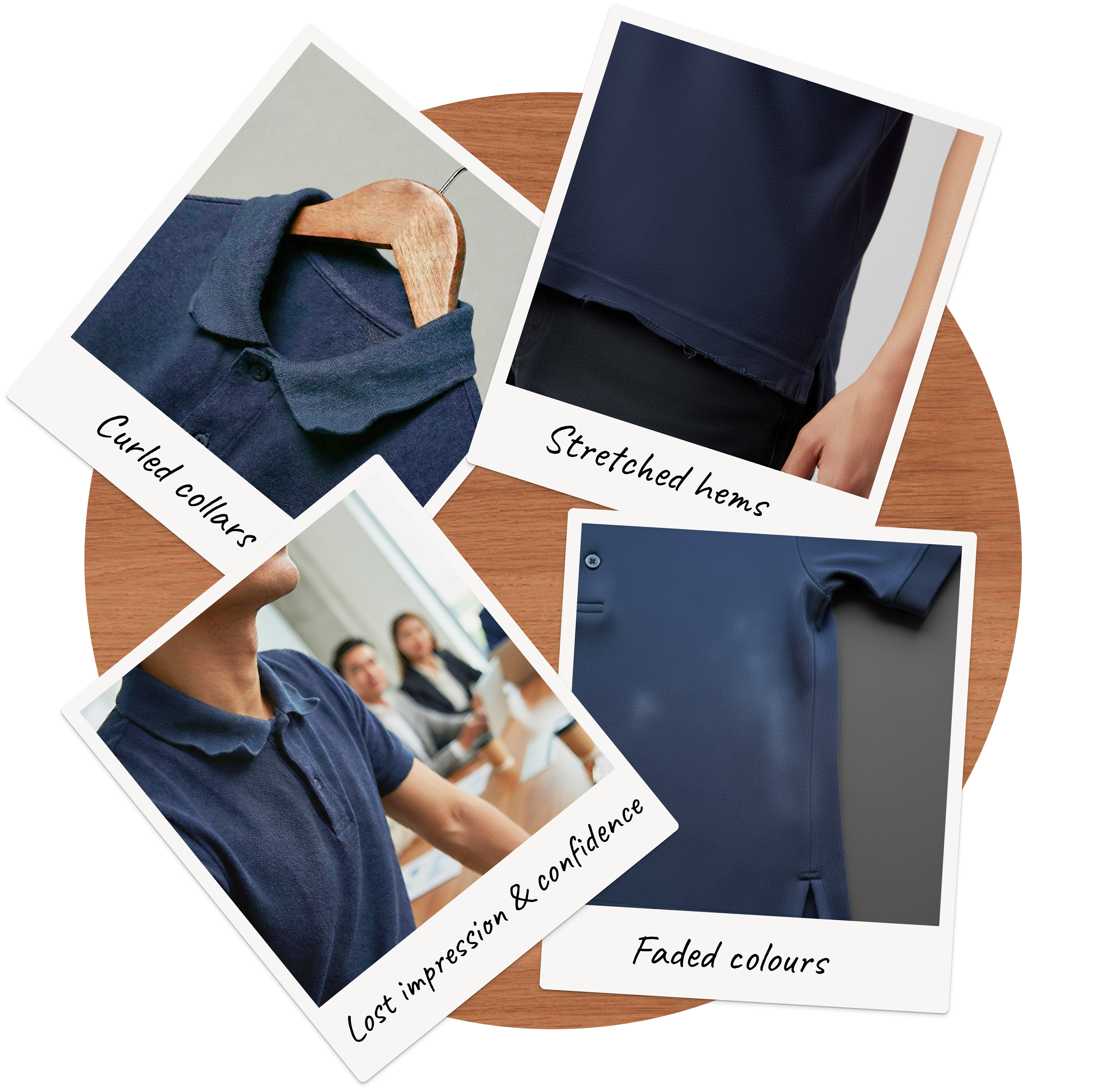 Most polos are designed like lazy weekend wear, not office wear. In a wash, the collars curl, colors fade and it edges lose shape.